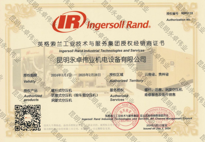 上海英格索蘭經(jīng)銷(xiāo)商證書(shū)